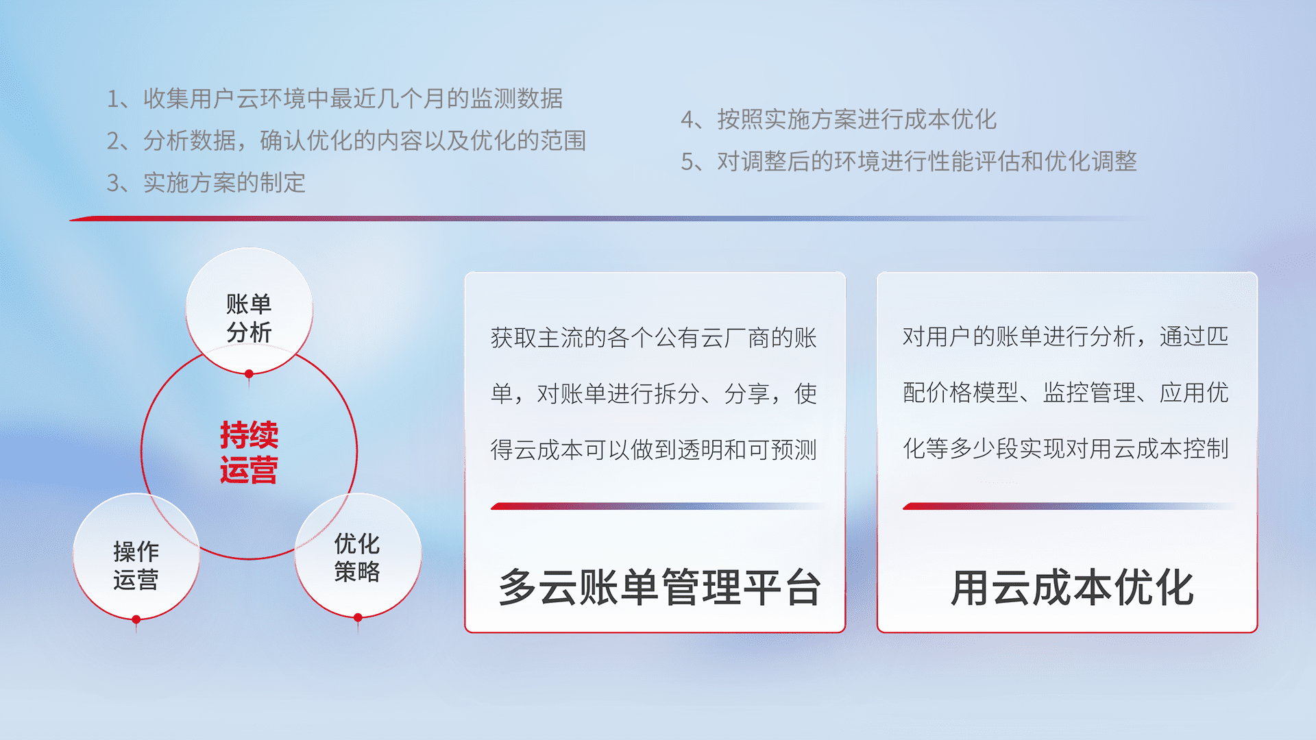 监控业务系统资源开销,,对资源的消耗精确计量,,,,实现费用的透明化管理,,,,不断提升资源使用率,,,调整资源购买方式,,,降低资源费用成本,,,用云成本可预测、、、用云费用可优化,,云资源配额有据可依。。